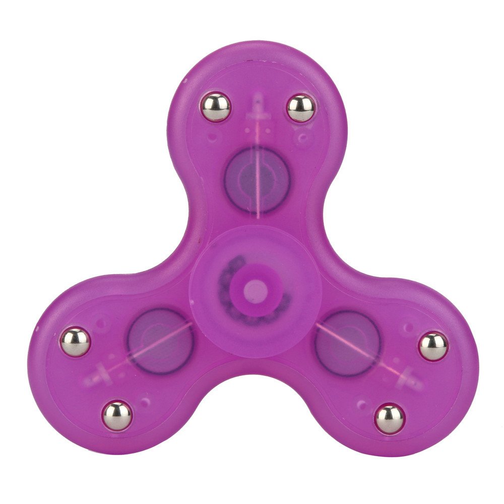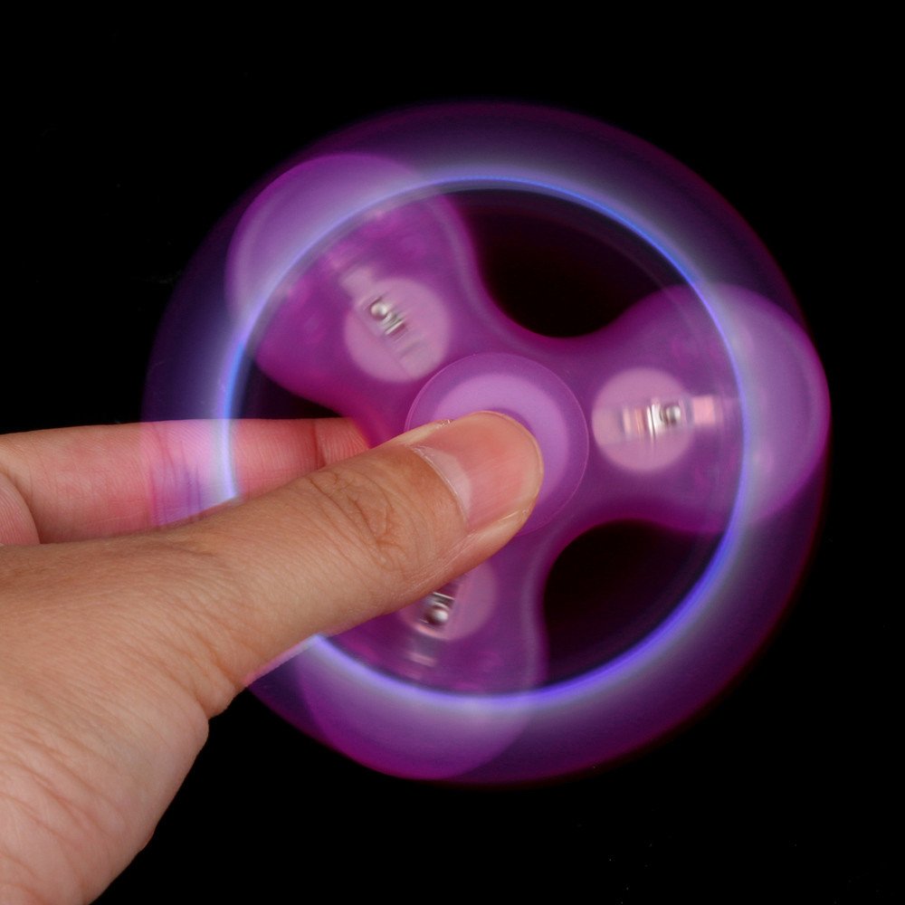 LED Glowing Fidget Spinner Triangle Single Finger Decompression Gyro Hand Spinner Fingertip GyroFeature: This product uses Steel ball bearings and steel counterweight bearings, with high-density Gold-plated frame, control costs while maintaining the alloy gyro of playability and speed. Great For Fidgety Hands, ADD & ADHD Sufferers Helps Relieve Stress Perfect size suitable for Adults and kids Material: Plastic + metal originals LED Light with Button you can Free switch Because every hand spinner can glow 7 kinds of color. It not only can shine one color, but also can mix seven colors flashing. You just need to change the color by the switch. 7 kind of monochromatic light 1 kind of mixed colored light Easy To Carry,Small,Simple,Discrete and Fun,also effective for Focus and Deep Thought SLA technology,laser industrial molding technology,resin materials,accompany you year by year Use This Way:Hold spinner in one hand and use the other hand to spin it rapidly using small continuous strikes to keep it spinning indefinitely with practice,spinners can be spun using one hand only using the fingers of one hand to stop and start spinningPackage Contents: 1x Tri-Spinner Fidgets