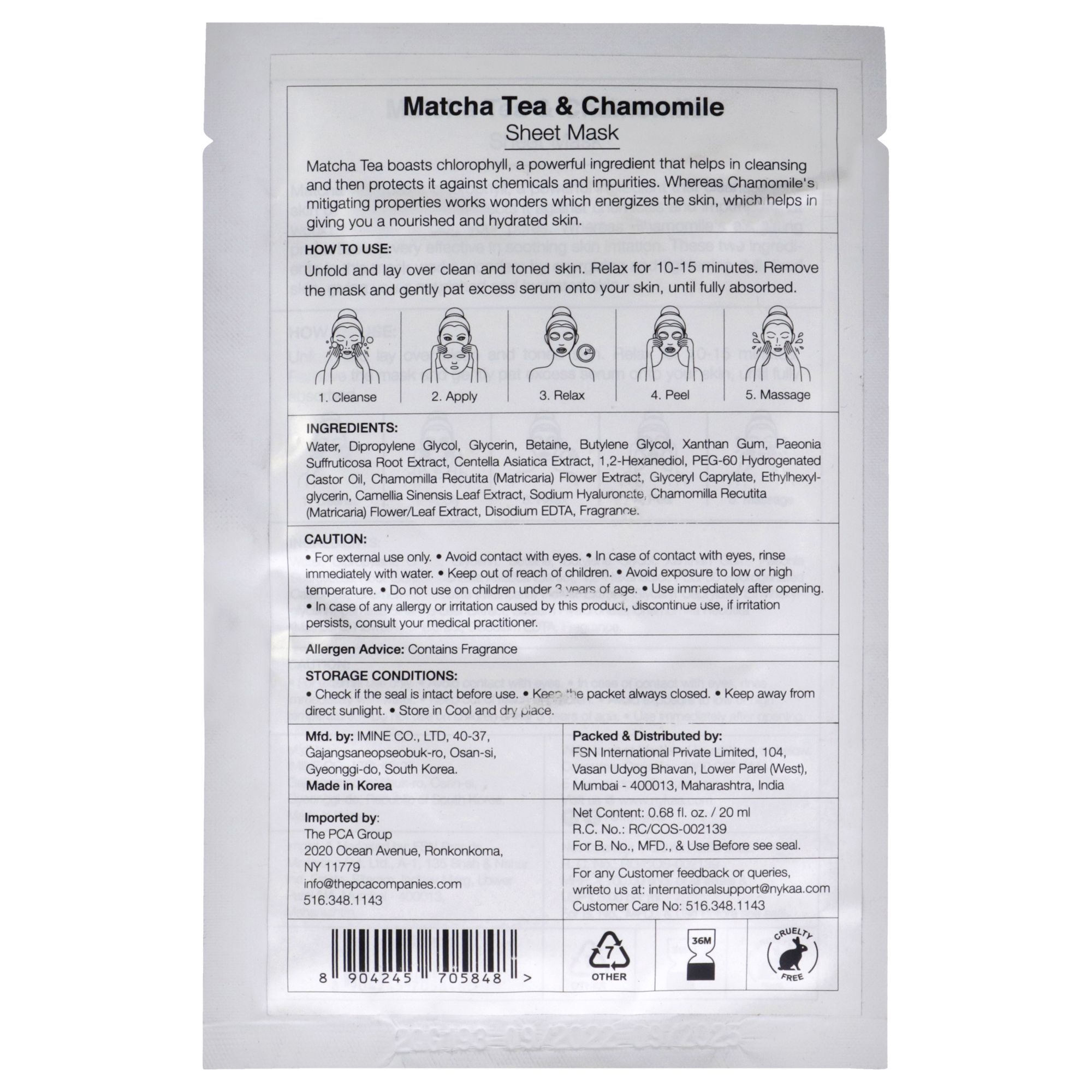 Skin Secrets Sheet Mask - Matcha Tea and Chamomile by Nykaa Naturals for Women - 1 Pc Mask